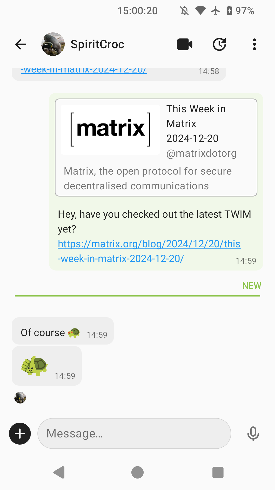 2025-01-27 β This Week in Matrix β ThibThis week we tried publishing TWIM on a Monday, but people seem to enjoy reading their Matrix news during the weekend. We will get back to publishing TWIM on Fridays!